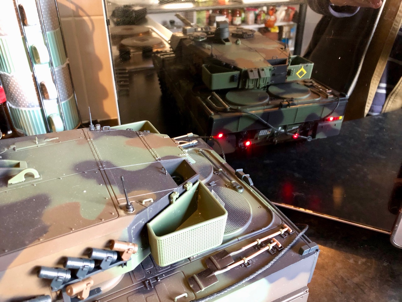 good with decals and extras added. In fact, there's not an awful lot to choose between it, and rich kid's Tamiya Leopard. Well, at first sight anyway. I did observe that if the laughable manual the rear shackle