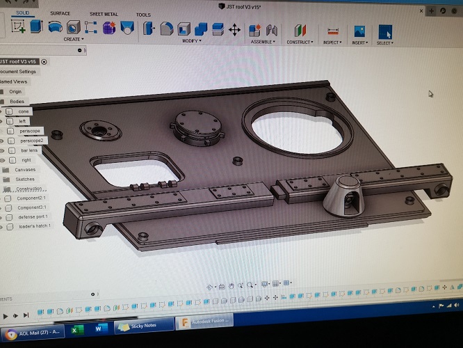 I love it and I thought it will lend itself well to my JST so I quickly fired up Fusion 360 and got to work again but in order to use the design I had to re-design the roof layout again. The range finder bar went through a few test prints in order to get a snug fit and the right sizing/look but this will be the final design I think!?