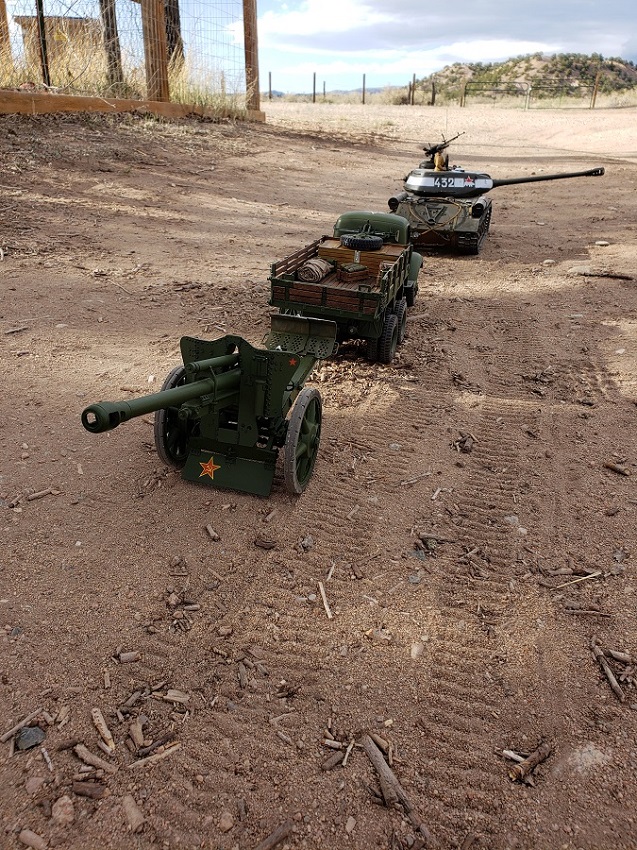After Rad's Excellent Stencil Set came in and the KR-11 markings were refreshed, I decided to have another try at some outdoor photography and video with the Truck and Towed Gun. On the advice of a higher ranking Officer, some armored protection was added.