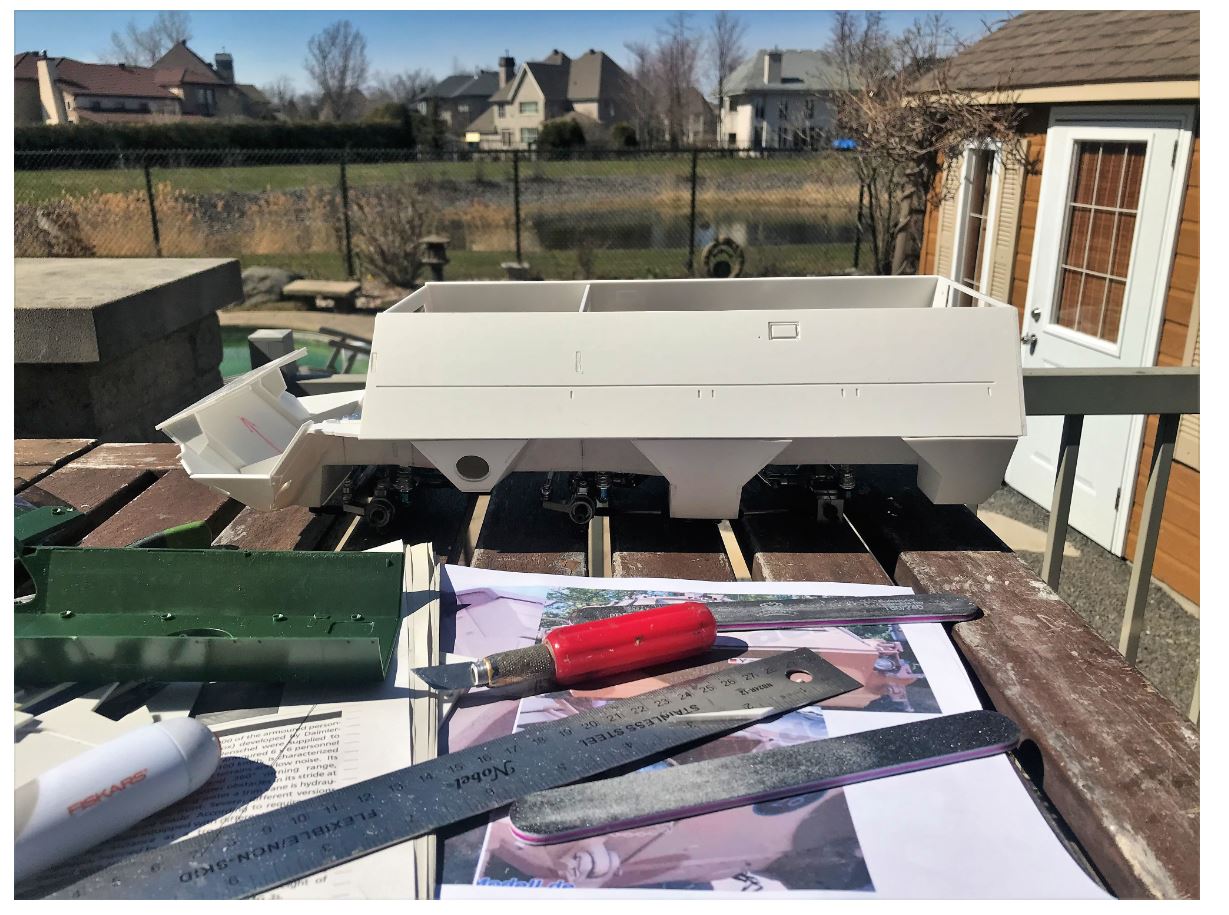 Rear view. No servo operated ramp here. But the two doors will be made to open and close.