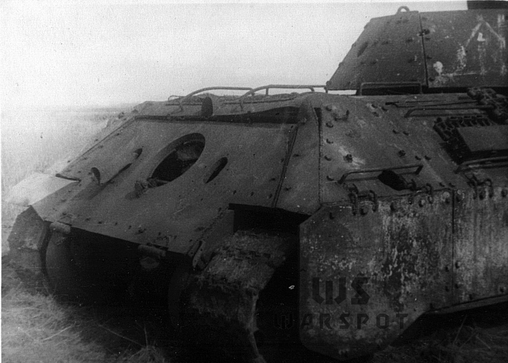 1942-43 version 2 with side screens. Battlefield use showed low efficiency of screens on T-34 alone with extra load to transmission and engine plus excessive metal consumption so they were discontinued. A bit over a hundred were made in late version. All were lost in battles - none has survived till today.