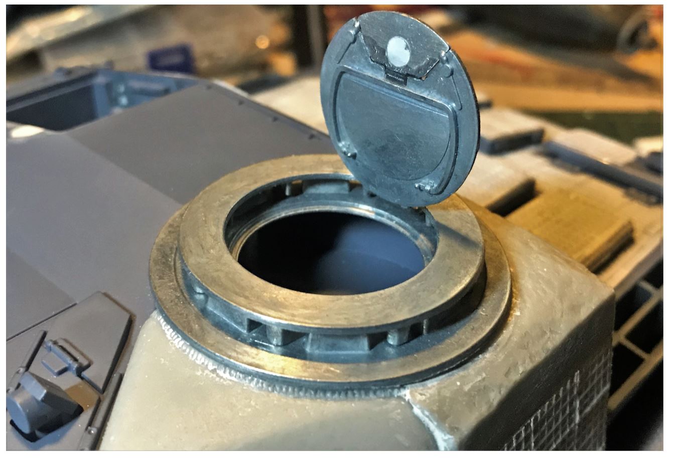 The Heng Long plastic cupola had warped ring and missing the small hatch, it was replaced by a metal Mato one, available for a few dollars. Looks good.
