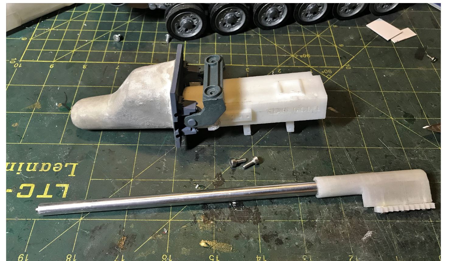 The Clark 3D printed recoil unit is installed to the back of the mantlet after much reconfiguration. The inside of the recoil piston was drilled to accept about 5mm of the Trumpeter barrel for a good and strait connection.