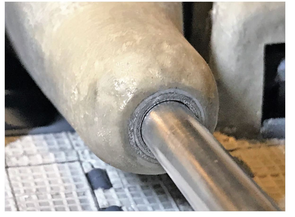 Here is a picture of the gun at full recoil. The barrel centrally enters the sleeve and is kept clear of the side. Tip is polished and there are no sharp edges. The barrel need to be solid and strait in the recoil unit. This is the reason why i always make my barrels go very deep into the piston of recoil unit. If it was only attached at the tip of the piston, it would likely bounce in all directions.