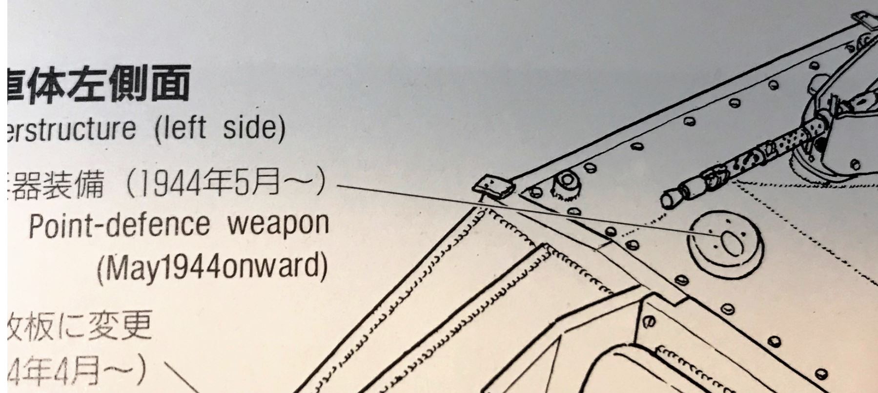 View and position of the Point defense installed on late models. Its some sort of gun shooting a nasty canister round at any enemy soldier that climbed on the tank. It can be oriented towards the target.