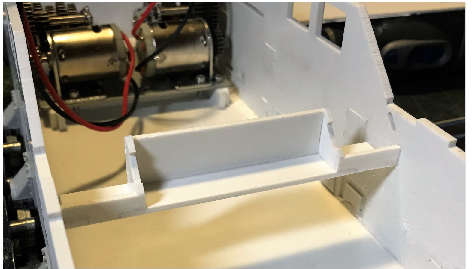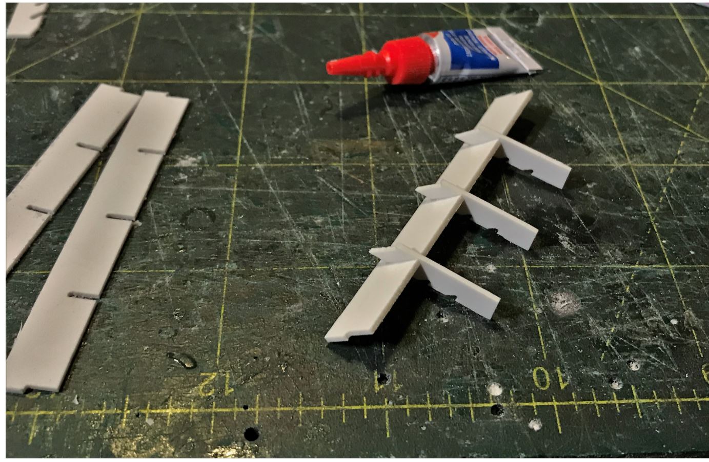 An extension of 6.5mm is created for the front. A beam made of 4mm thick plasticard is placed underneath to reinforce the platform.