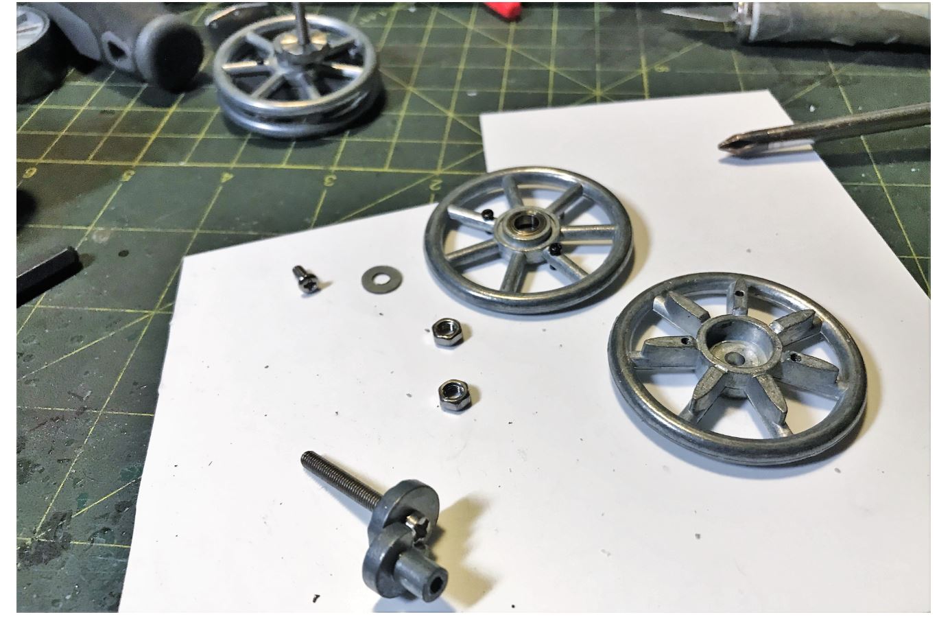 The internal size of the Mato ball bearings are the same between the Sherman and Panzer IV idler, the axel is simply connected to the Panzer IV idler wheel with the same bolt and washer. Not everything has to be a struggle...