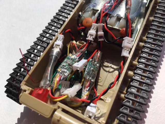 Oh yes Herr DR, I am fascinated with all types of mechanized model electronics. I just recently came upon "Das micro" products on ebay. They have some tiny electronics available, unfortunately, all their micro products require precision soldering skills as they are not wired from the factory. In the M60 chassis, the electronics shown have all been hand wired with 1.5mm male\female connectors using a connector I\O protocol that allows a "mix and match, plug and play, serial link" strategy that allows electronic subassemblies to be connected in series or "daisy chained" for specific motor control options and the like. Yes I have spent a lot of time with this strategy and have some impressive model motor drive control electronics tech in my models. I attempt to share it with others of like interest but as you can guess it takes a lot of time to explain and type out and present in an intelligible fashion B|
