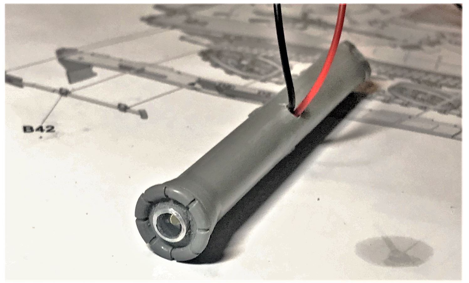 This is a missile so the flash is not at the front, it is at the rear, aka Back blast. I decided to install a 5mm LED as a replacement to the small tip inside the protective cover. An aluminum tube provides the right dimension as a replacement, the LED fits inside it.