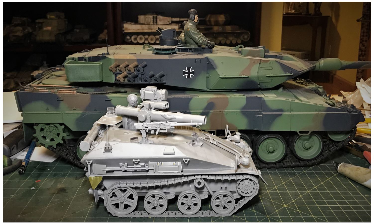View of the Wiesel next to a Leopard 2A6 for size comparison.