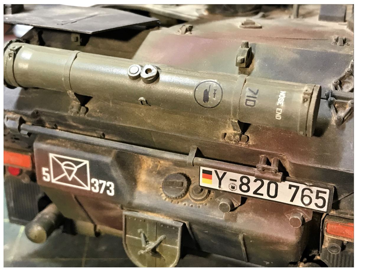 The Wiesel carries six TOW missiles. The kit provides two, one for the launcher and one that is attached externally on the back plate. I assume the other four must fit inside the hull somewhere at the back. Too bad the kit does not provide interior details, it would have been interesting.