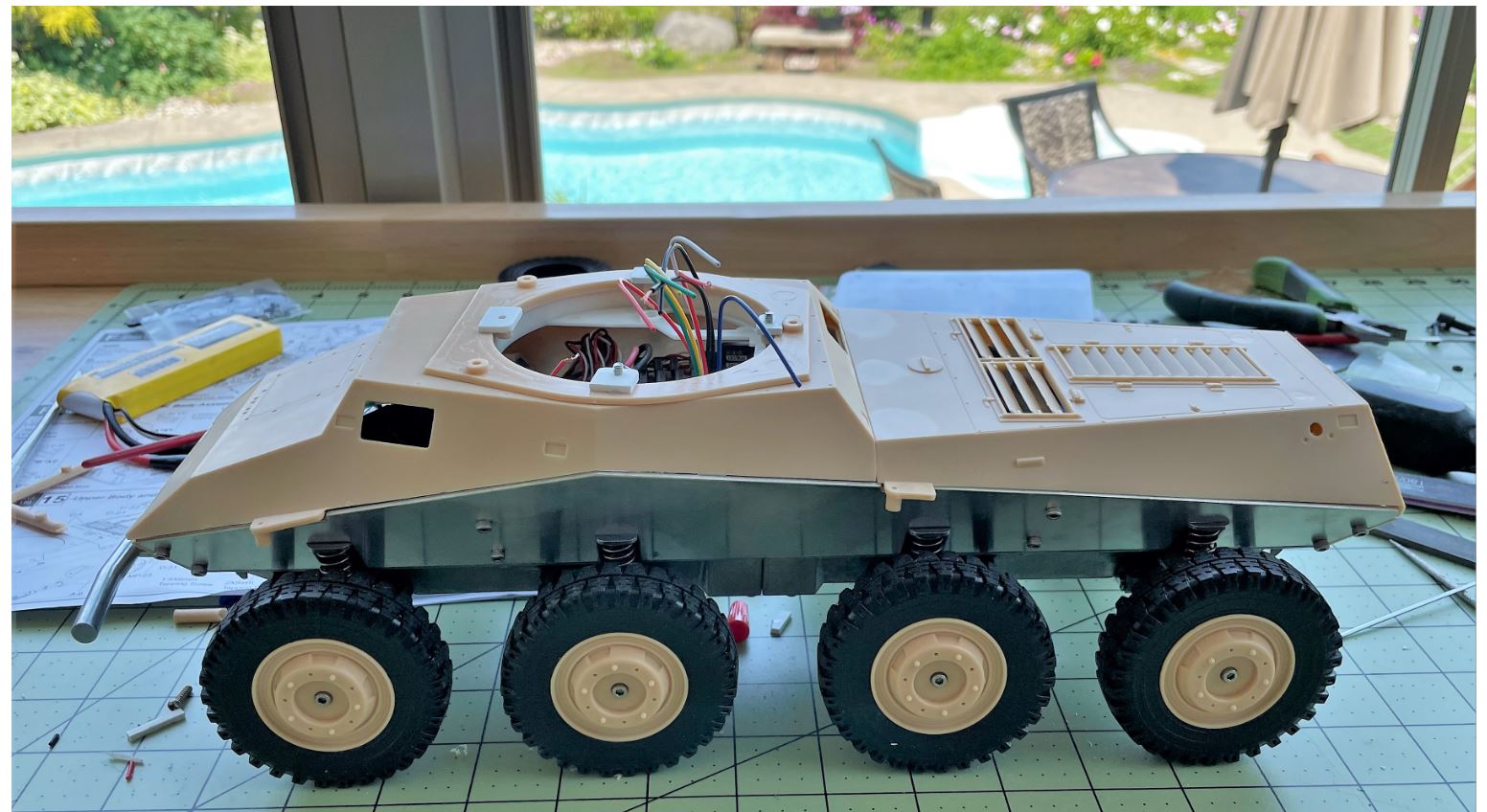 Everything fits well inside. This is the model as it stands today after only 4 days of part time work. I will put this build aside for a while, going back to the GTK build while i wait for a hollow Puma gun barrel from MK Modellbau. The plan is to give the gun elevation, recoil, flash, sound with coax MG flash and sound.