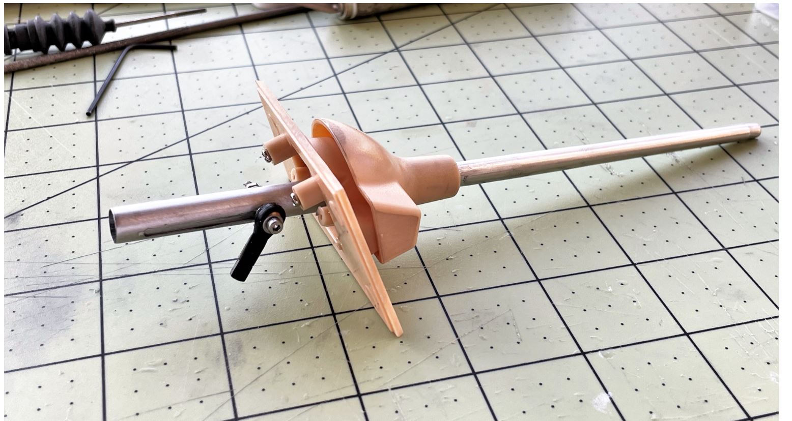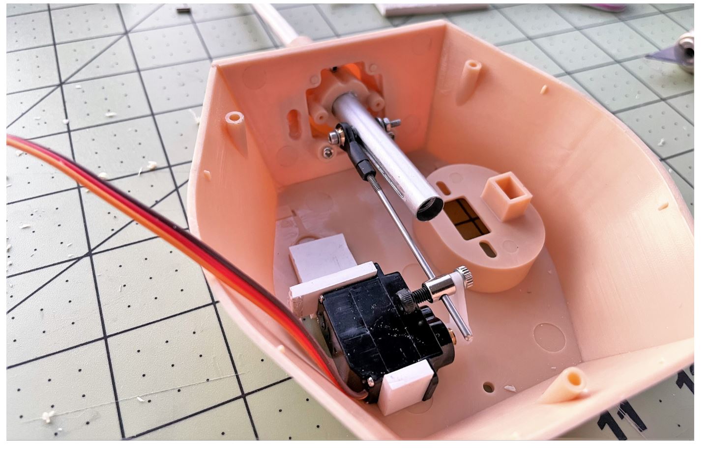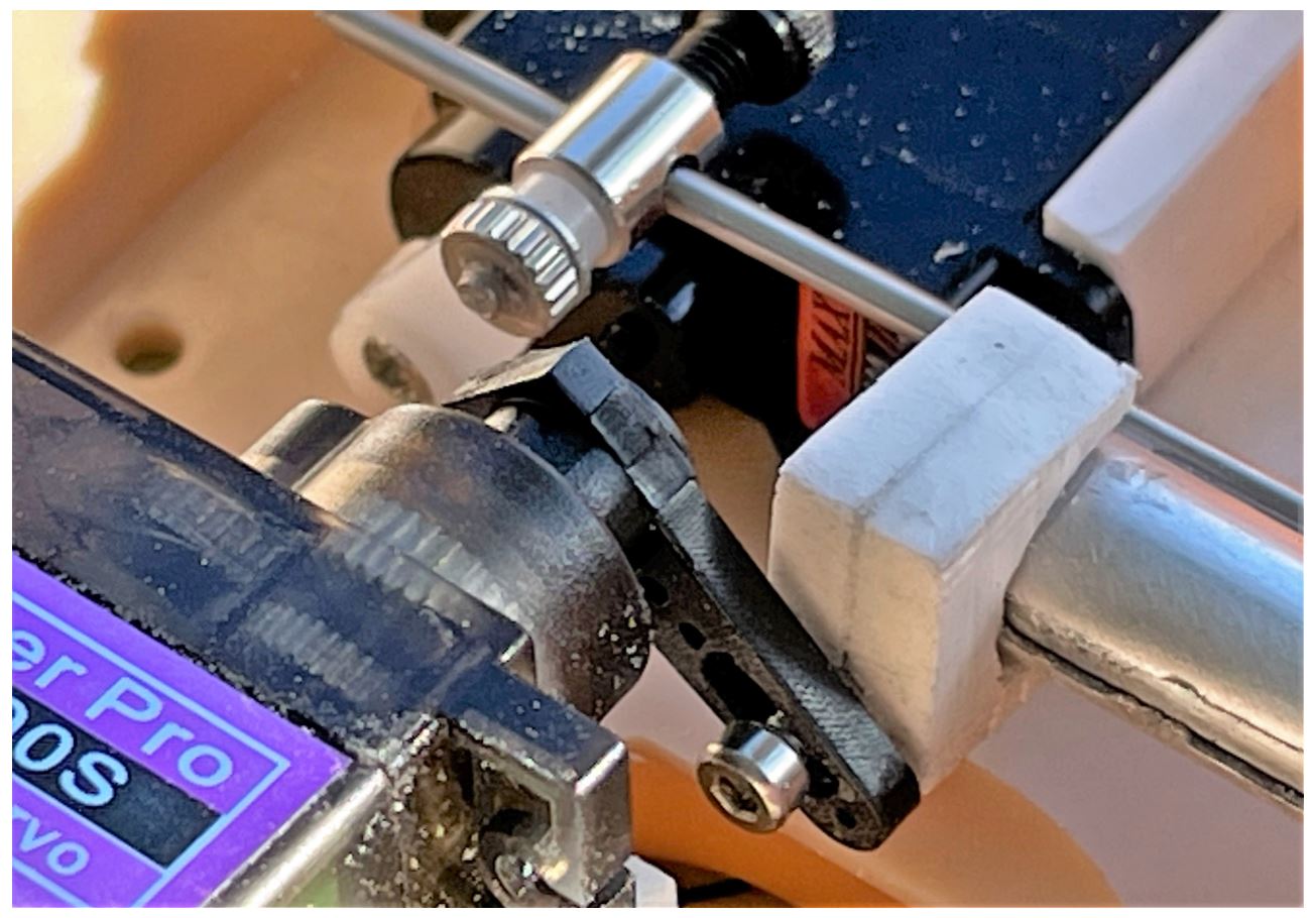 A plastic stub is glued to the end of the recoil tube into which the elevation servo is connected with an M2 hex bolt.