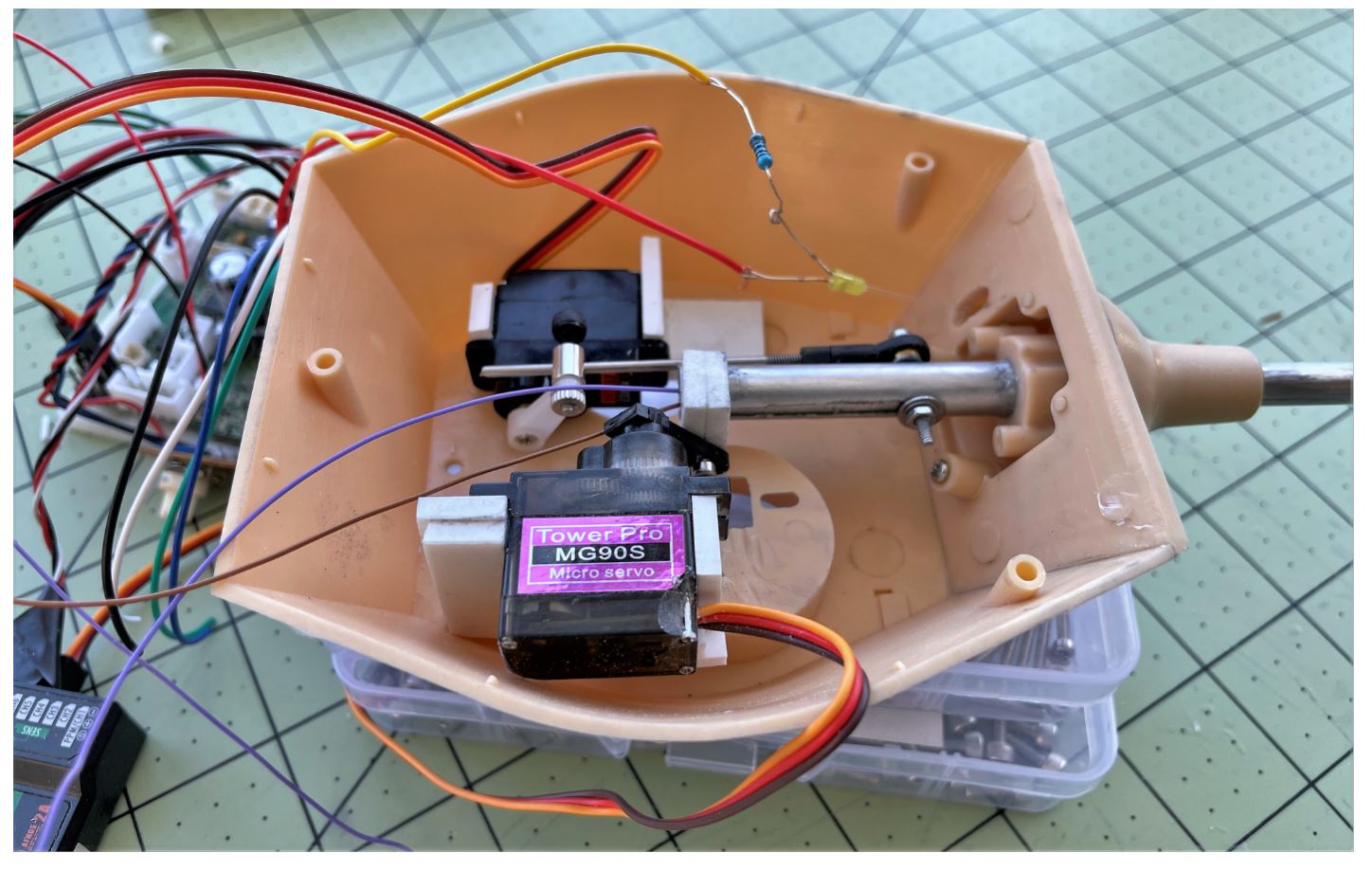 For elevation, a groove is created in a micro servo regular plastic arm.