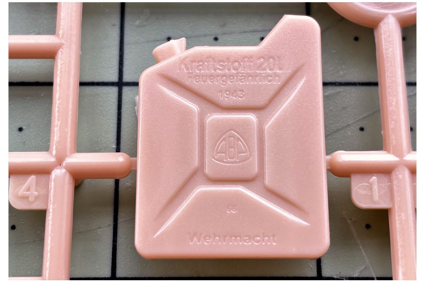 Each Jerrycan comes in 5 parts. Eight Jerrycans are provided although only 6 are supposed to fit on the hull.