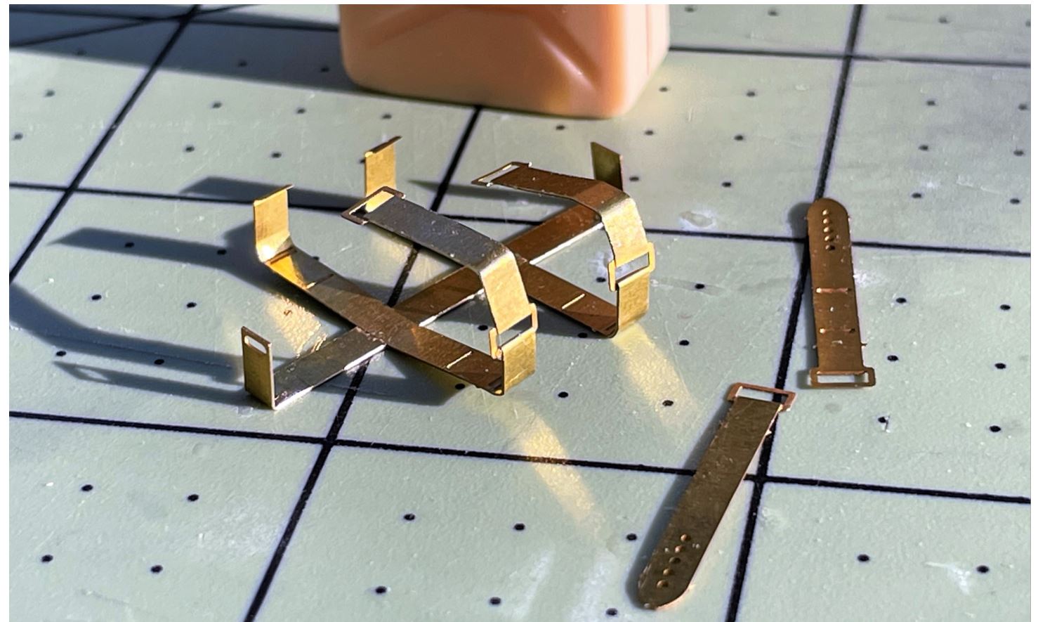 The mounting brackets are provided in Photo-Etched parts, each bracket requiring assembly of 7 small PE strips.
