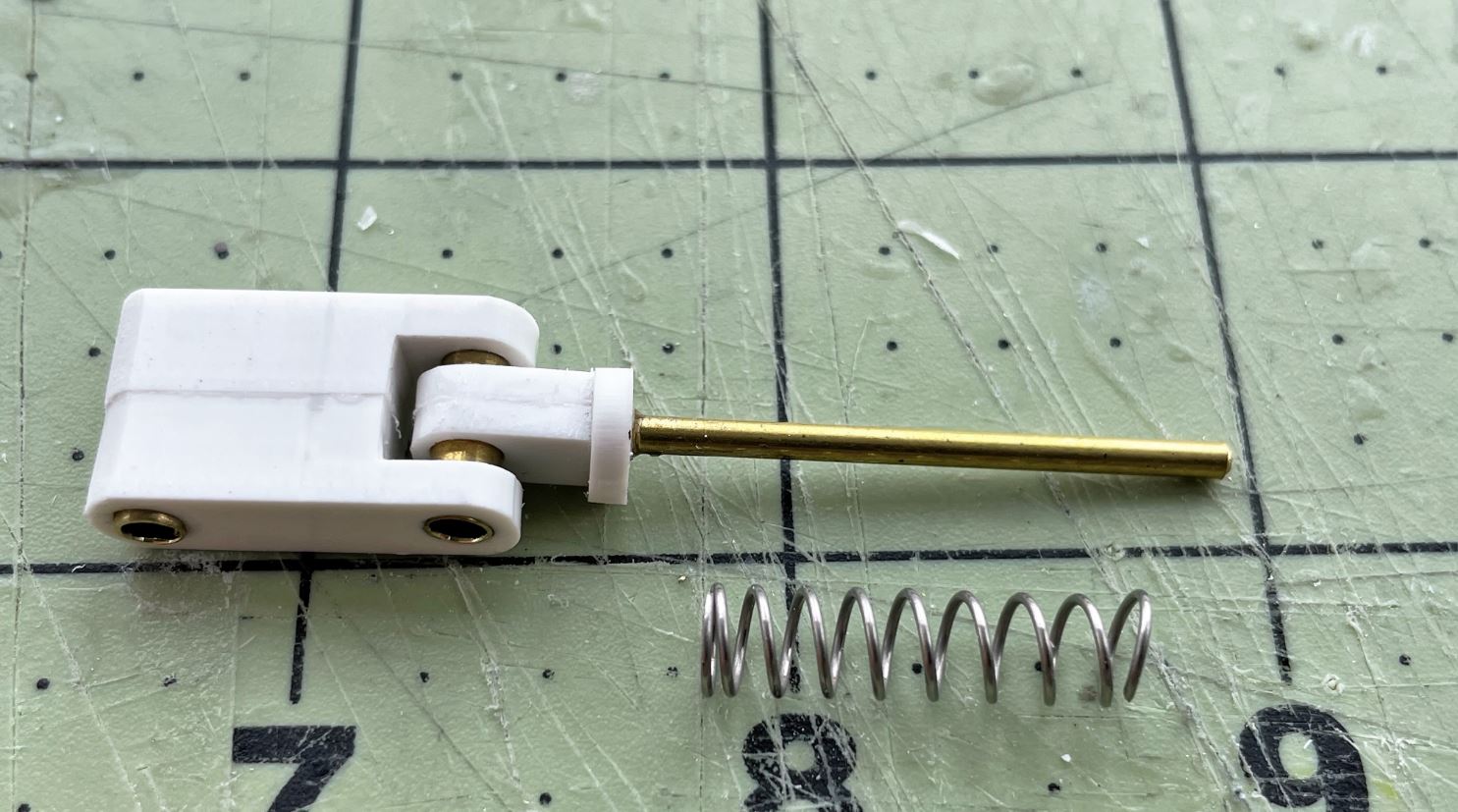 Close up of the suspension arm and spring guide. I cut the provided springs according to my calculations, 10 rings each which should allow for a firm suspension. Until the tank is finished and testing happens, it is better to cut these longer than shorter... They can always be made shorter later if need be.
