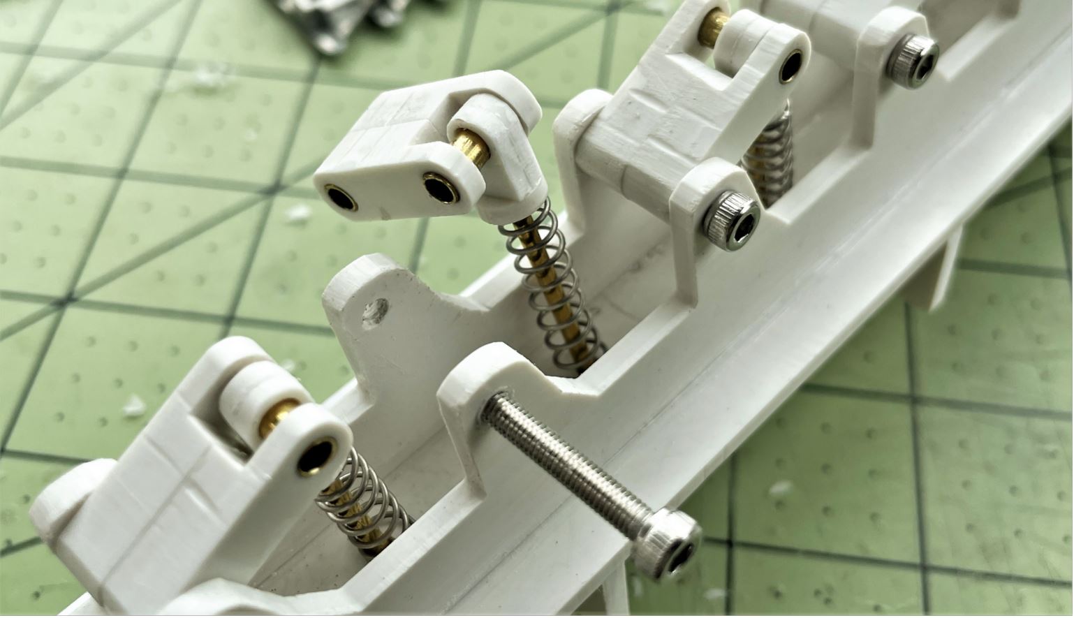 I was always worrying as to how i would create stops for the suspension. I was afraid this would be a loose suspension. Not sure if by design or else, but the suspension spring guide parts create a stopper at the right height when installed on the suspension arm. Bravo Ludwigs. The suspension is installed using M3x20mm hex bolts.
