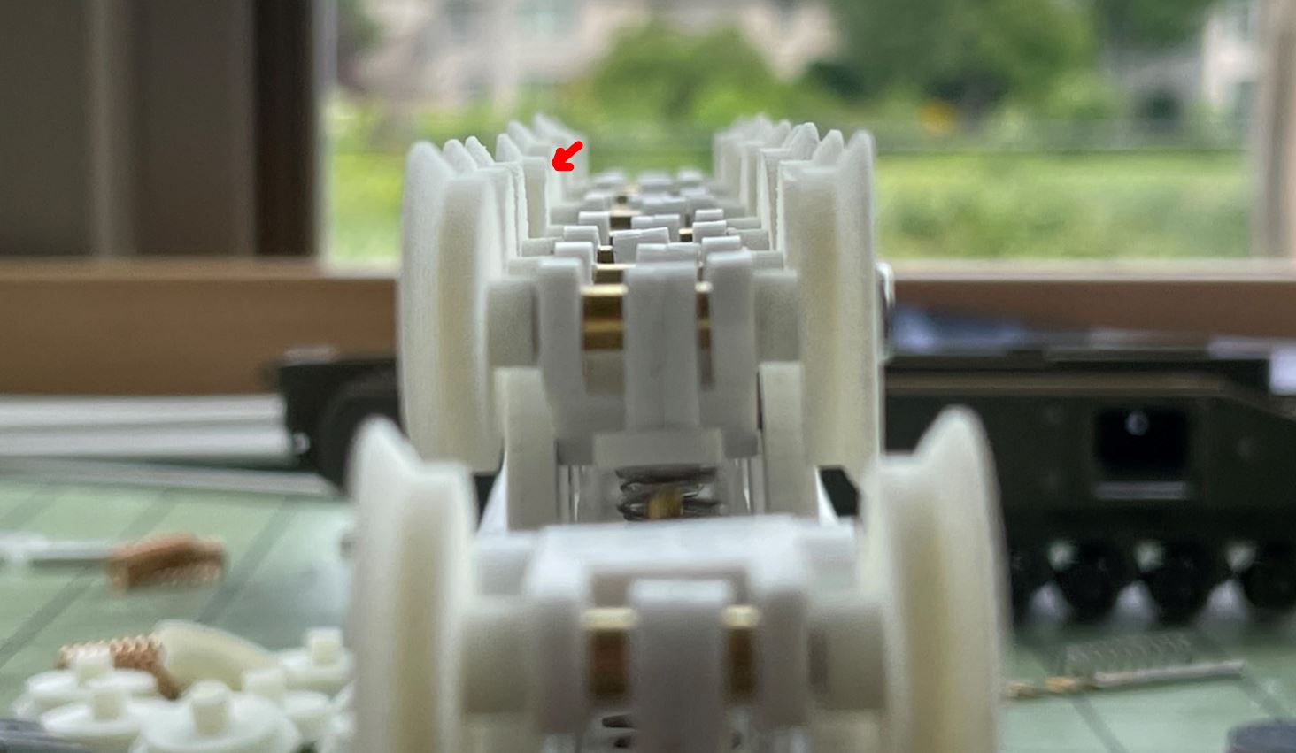 The Churchill does not have return rollers. It was another mystery as to what supports the track under the covers. I can see now that these are rails, metal against metal. I need to order some L shaped brass strips for this.