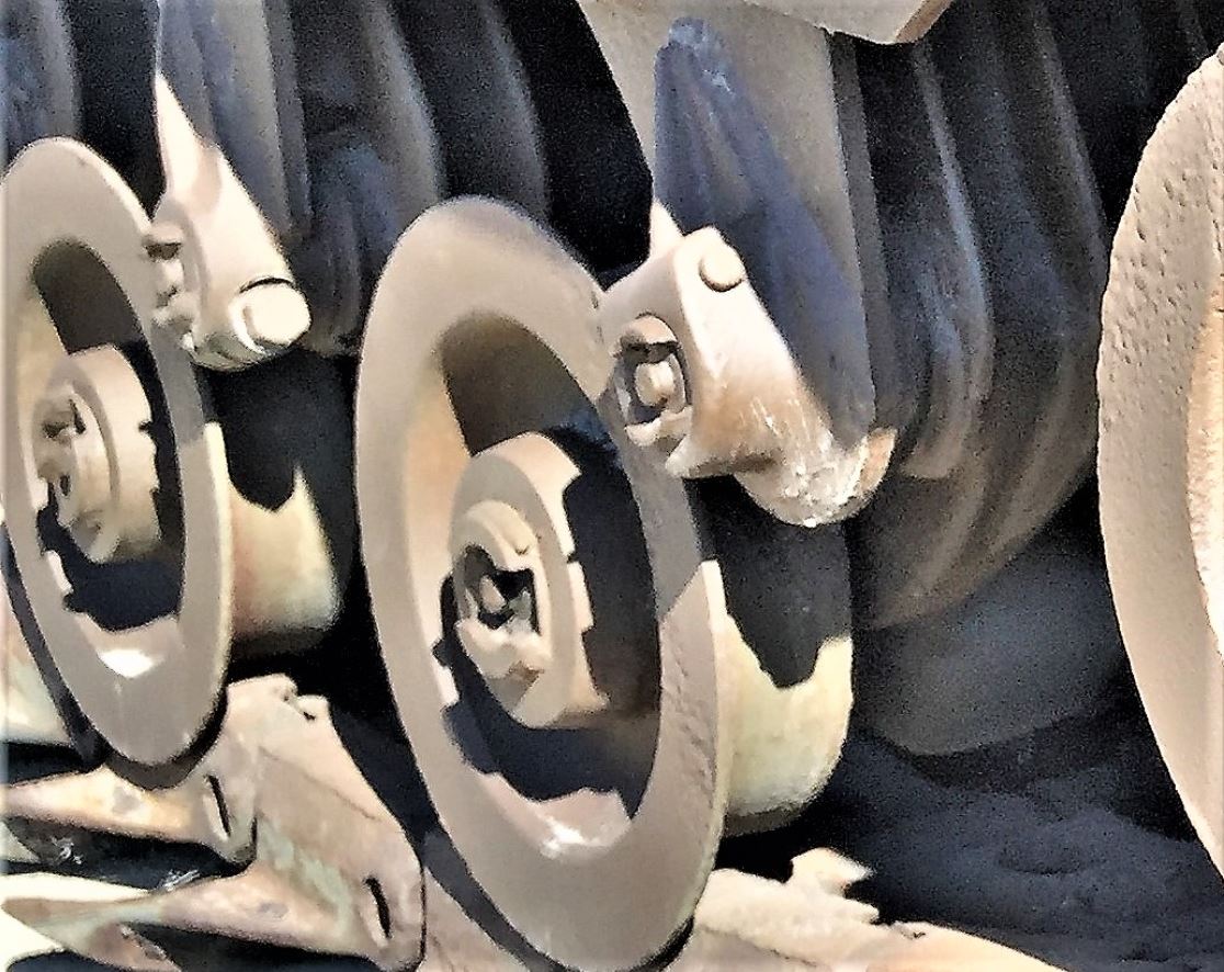 Testing showing a view of the Interior roadwheel and how they connect to the tracks. The engineers and designers of the Churchill tank must have had background in locomotive and train design.