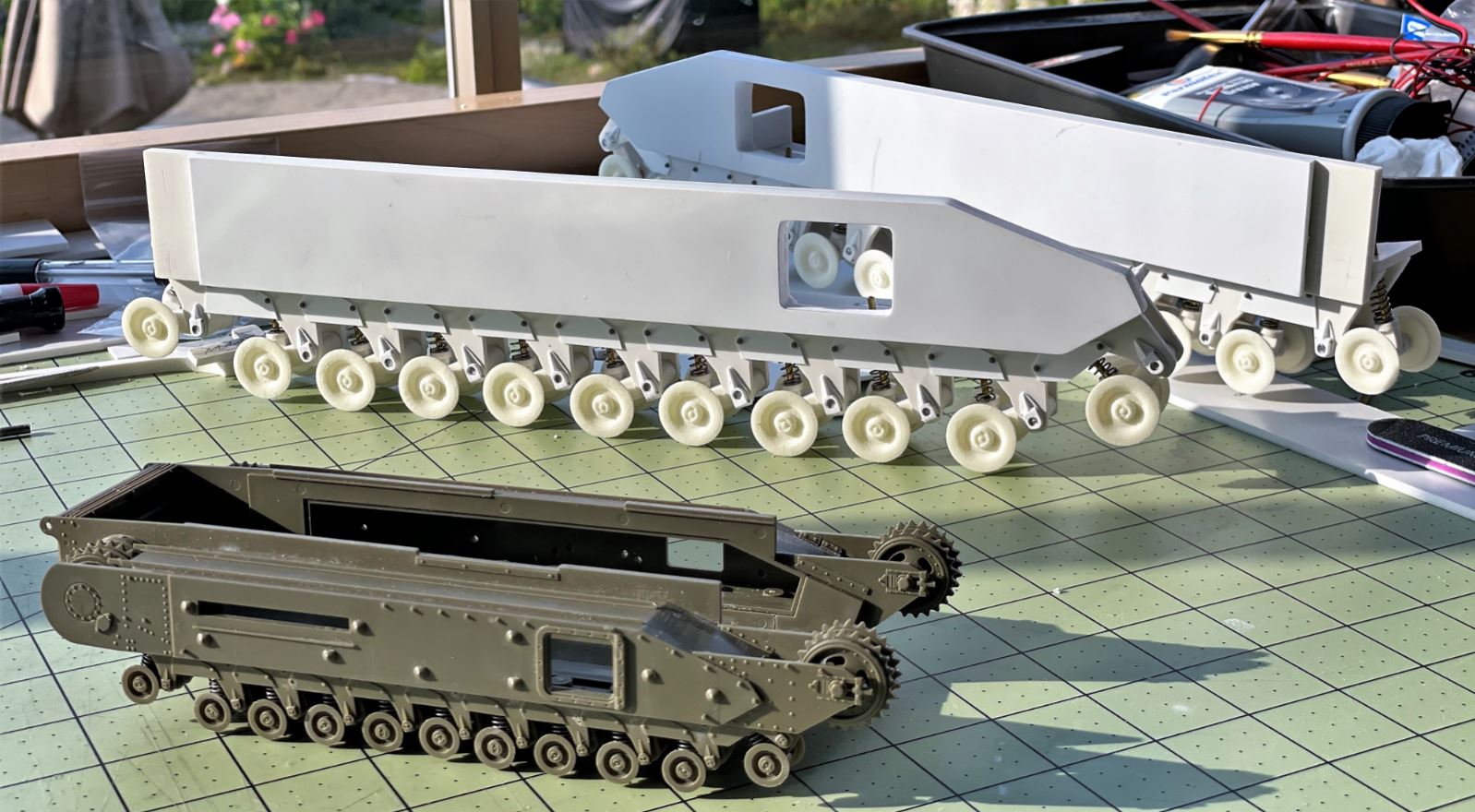 With the tracks exposed like a WW1 Mk IV, this Churchill shall look good. It should be impressive to see the tracks rolling 360.