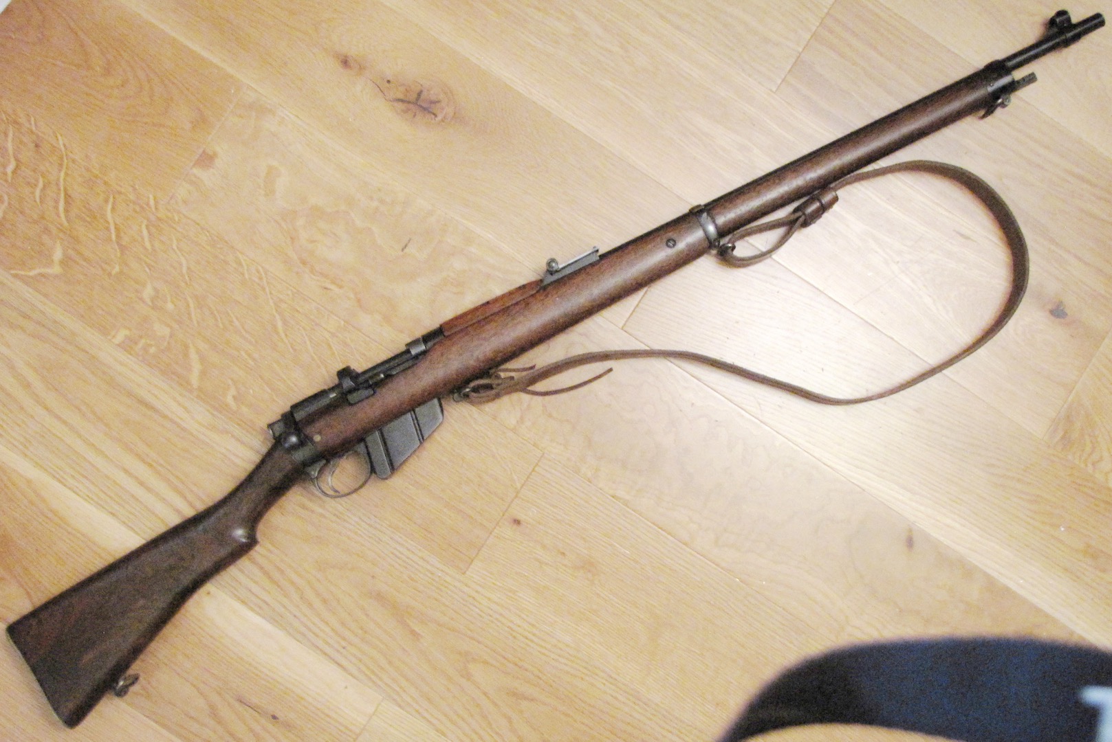 An old Lee Enfield, a CLLE built before the SMLE No 1. 2 sets of numbers so I think it was worked on by AJParker with new barrel as it shoots like a dream - or it use to. Failing eyesight mean I need a scope sight to hit the target. Perhaps drilling micro holes using a magnifying glass when making tanks has not helped!