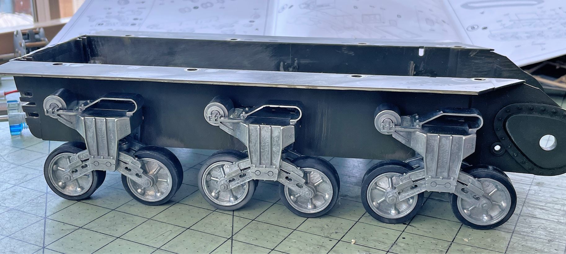 It is the first time i investigate these bogies, a nice touch over the use of plastic Mato or Heng Long bogies.