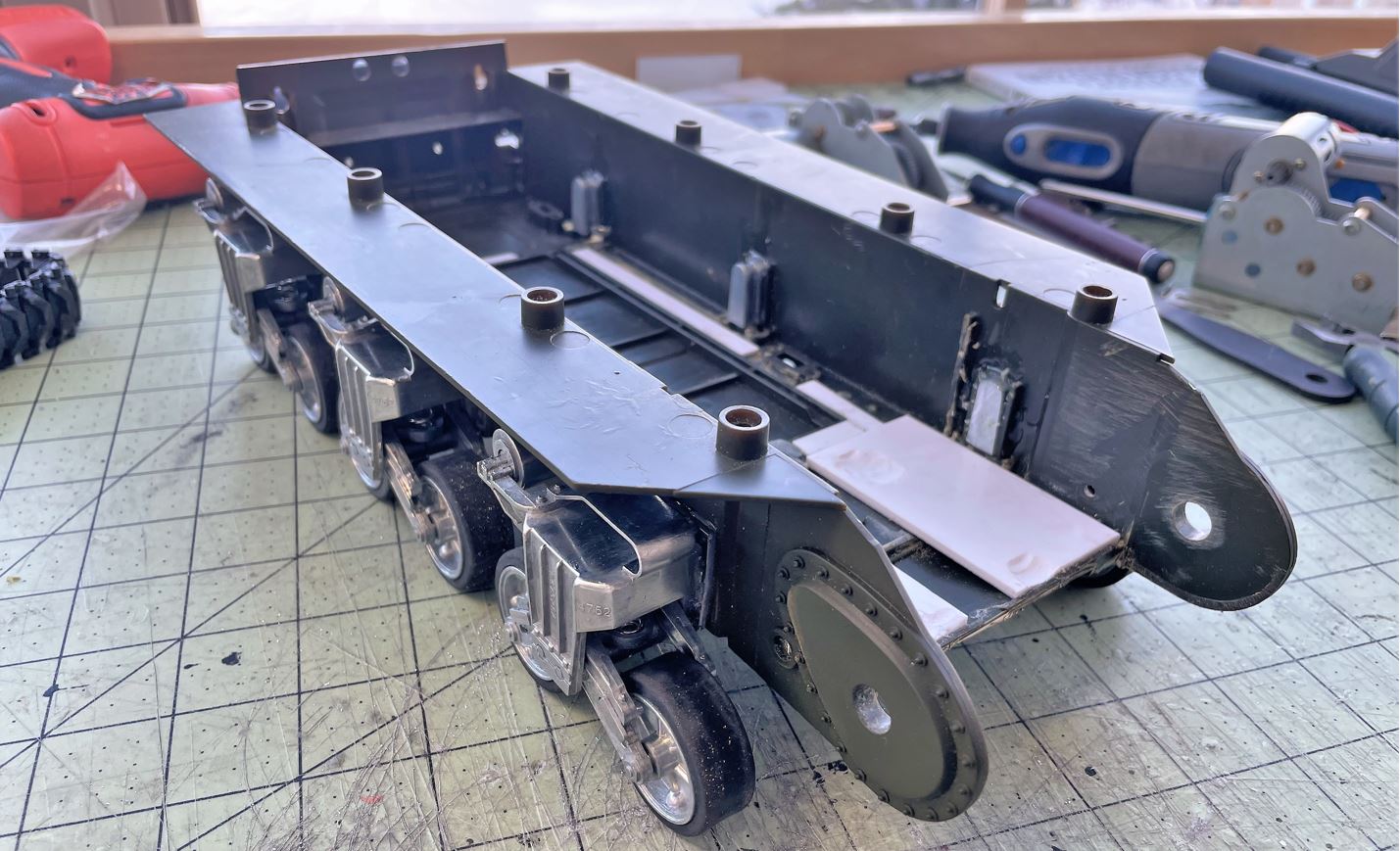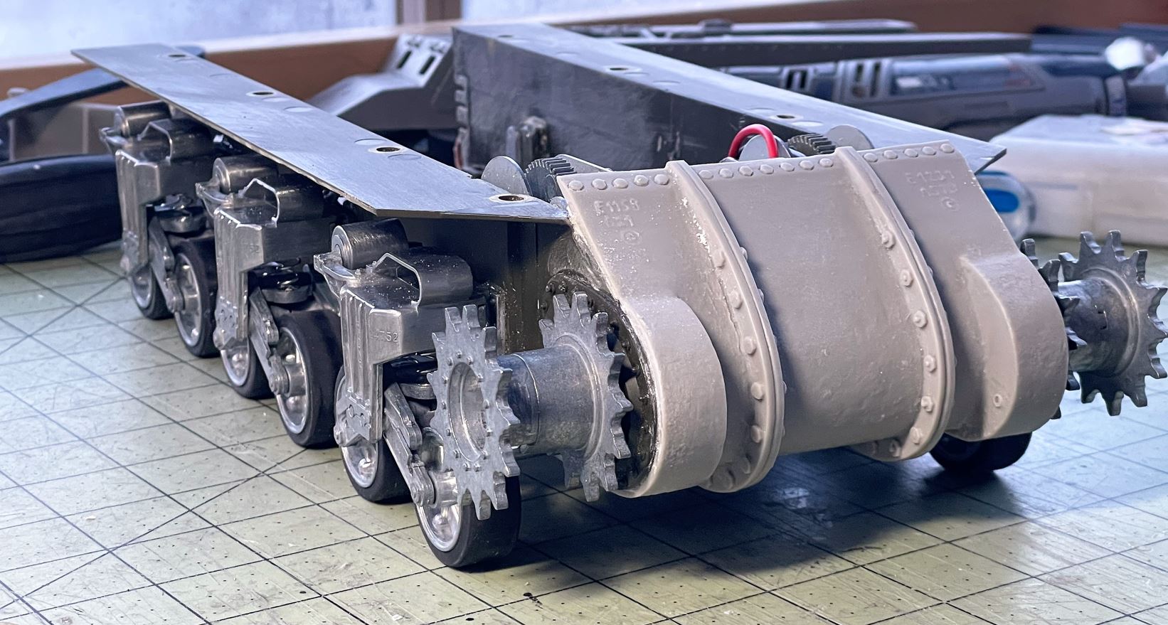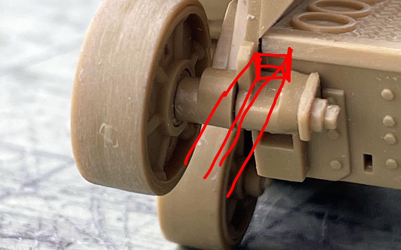 They were attached using epoxy glue as the metal attachment that locked the bogies inside the hull were not usable anymore due to the removal of the spacers on the front plate.