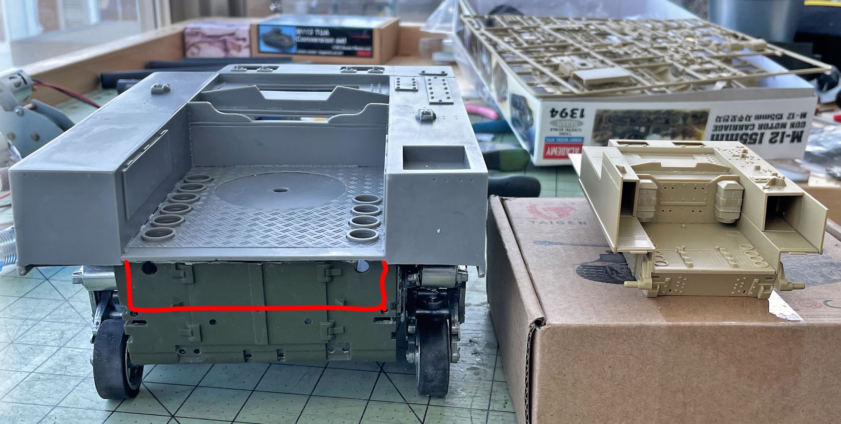 Ok... no trouble, i hated the double diamond tread plates anyway. Cracking the hull open on a Vandra kit is unavoidable when looking for an accurate model. But i was not planning having to do this, there is nothing easy with these kits. I really want an M12 that is accurate, not something that looks like an M12 twelve feet away. These kits are not for everyone, and it might be easier to just scratch build one...