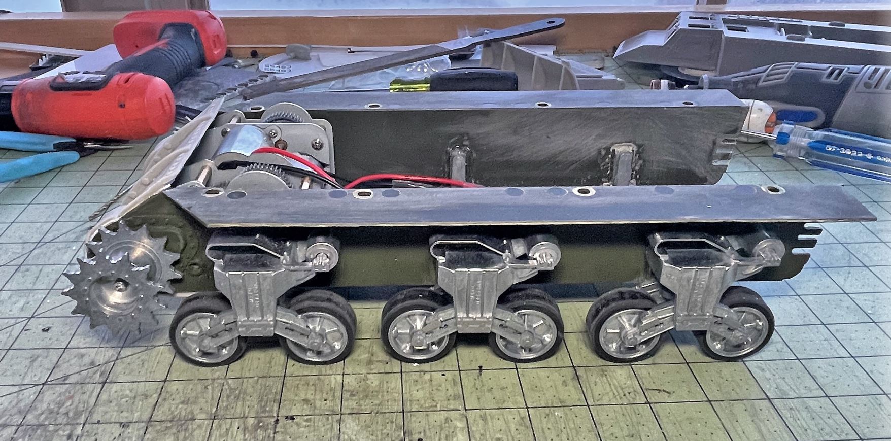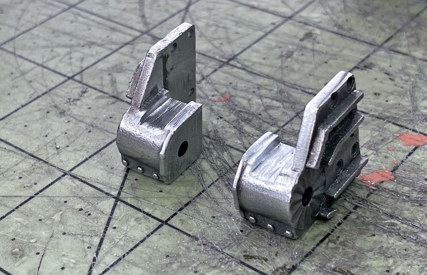 These are the finished mounting for the idler adjusters. The ears that are bolted on the sides are not exactly as they should be but since these are mostly hidden behind the idler wheels and tracks, i did not bother modifying them.