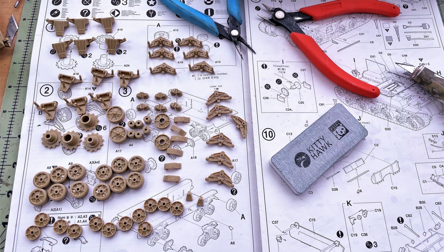 The 1/35 scale Academy kit will get partially assembled as i advance with the 1/16 model, and will be kept at my side at all times.