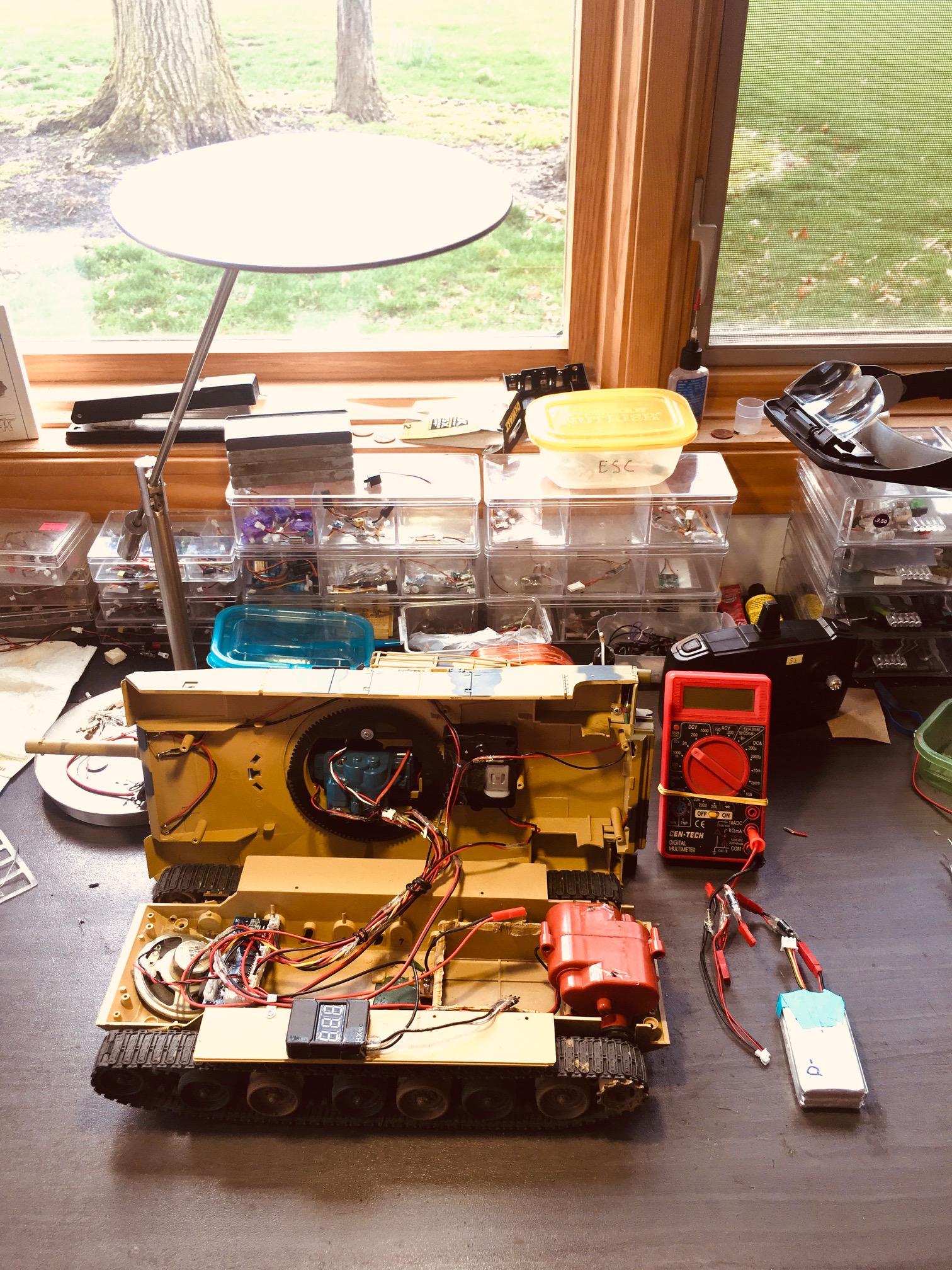 That is the I\R battle score system display. Each time the opponent Tank scores a hit, a light goes out. the Tanks does a wiggle as well and a explosion sound is heard.Herr Dr. Professor wrote: ↑Fri Apr 05, 2024 8:33 pm Unfortuantely, joelspangler has not been logged in since December. But I always check out your electronic wizardry. Of course, I don't understand most of it, but I am easy to impress.I see that the 1/24 tanks have enclosed motors: I wish the 1/16 ones all came that way, albeit with easy means to change out motors. That's asking a lot, I suppose. I did notice the four lights atop the 1/24 turrets: