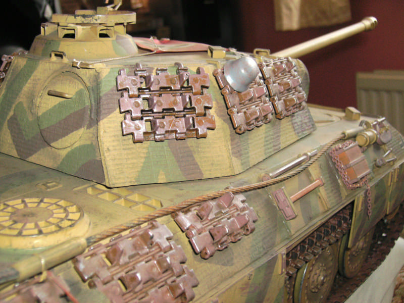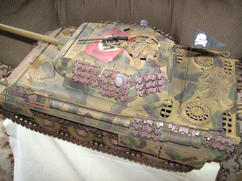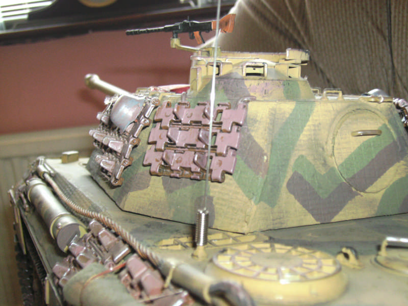 Hi heres my cammo design . Its the third on this tank , good old Mr muscle . Can I ask what you used for road wheels . I didnt intend on spending much on this realy as I have the HL Panther G from Dave to do. I bought the resin disks and added the bolt heads to the stock HL wheels and just re positioned them to resemble the Panther . I do have a set of Tamiya Panther G road wheels but no rubber rims or caps.