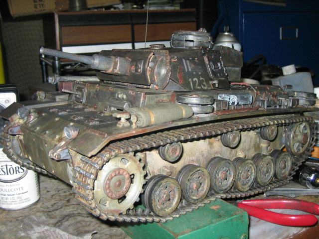 I bought this used form a member of RCU after he stripped the elecronics for a project tank. I decided to go with all the good stuff in it and it's pulled from the first time I tested it out. I rememebr turning the transmitter on and the tank switch and made sure the trims were set to the center and when it started, you could hear the ticking as the motor was just beginning to engage. I knew right then I had a problem...