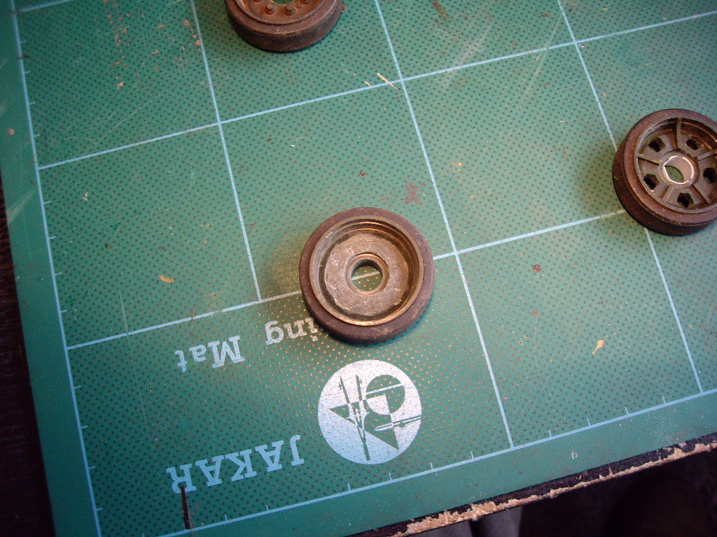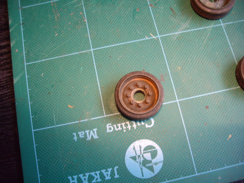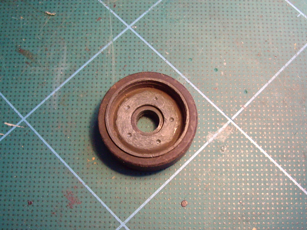 this shows the finished vvss covers and finished wheels note also the fact that i have brought  out he centre part to be almost level with the sprockets as they should be this was done by adding some 15mm copper pipe to the nut plate and a push fit was sufficient to hold it in place.........