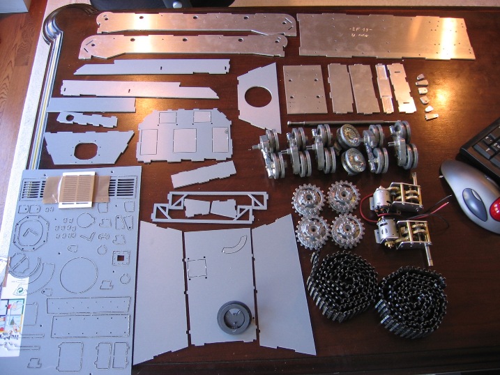 Thanks C. Ludwig!! Everything arrived safely. I bought the kit with the aluminum hull and correct motor/mount holes. Also, I got the kit w/plastic superstructure. To make things easy, I bought all the Asiatam tracks and wheels and drivers at same time, and Ludwigs front axle. Really nice work on the cut outs...some minor shaving to fit. And ludwig also included a new center hatch as the first one was slightly damaged by heat (Thanks!)