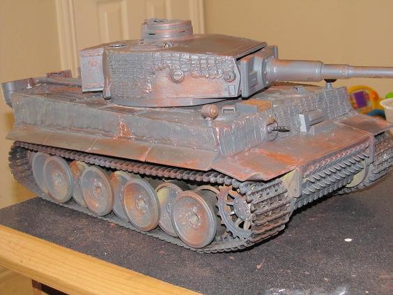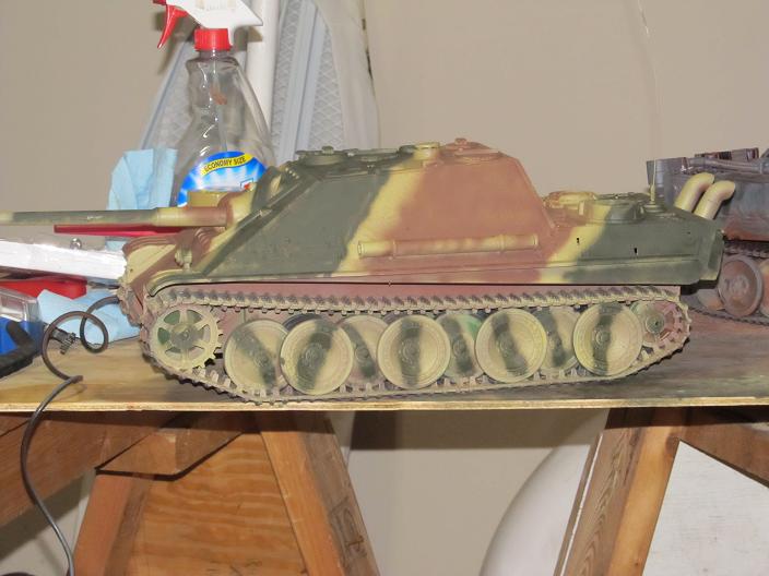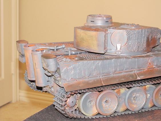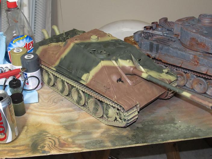 TC, Both my Tiger and Jagdpanther were stripped and repainted. The Tiger was my first Tank and my first time painting with the airbrush. I had the benefit of a teacher and a step by step procedure. I have noticed some talk about using salt, on the deck of my Tiger I used baking soda, the finish is ruff like painted steel. But because baking soda is a really fine grain the effect is much more even.