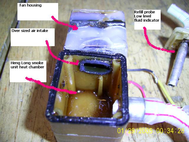 That system is amazingly simple : A mini smoke unit ( made with a discarded H.L. smoke unit and a 5 Volts mini fan ) ,