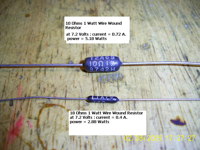 The smoke unit is running with a high efficient 18 Ohms 1 Watts Wire Wound resistor , ( I'm also using the same type of resistor for the exhaust smoker . The current consumption at 7.2 Volts is 0.4 Amps , or 2.88 Watts for each smoke unit ; for a total load of 0.8 Amps , or 5.76 Watts for 2 smoke units ; which is pretty reasonable , considering the amount of smoke produced ....