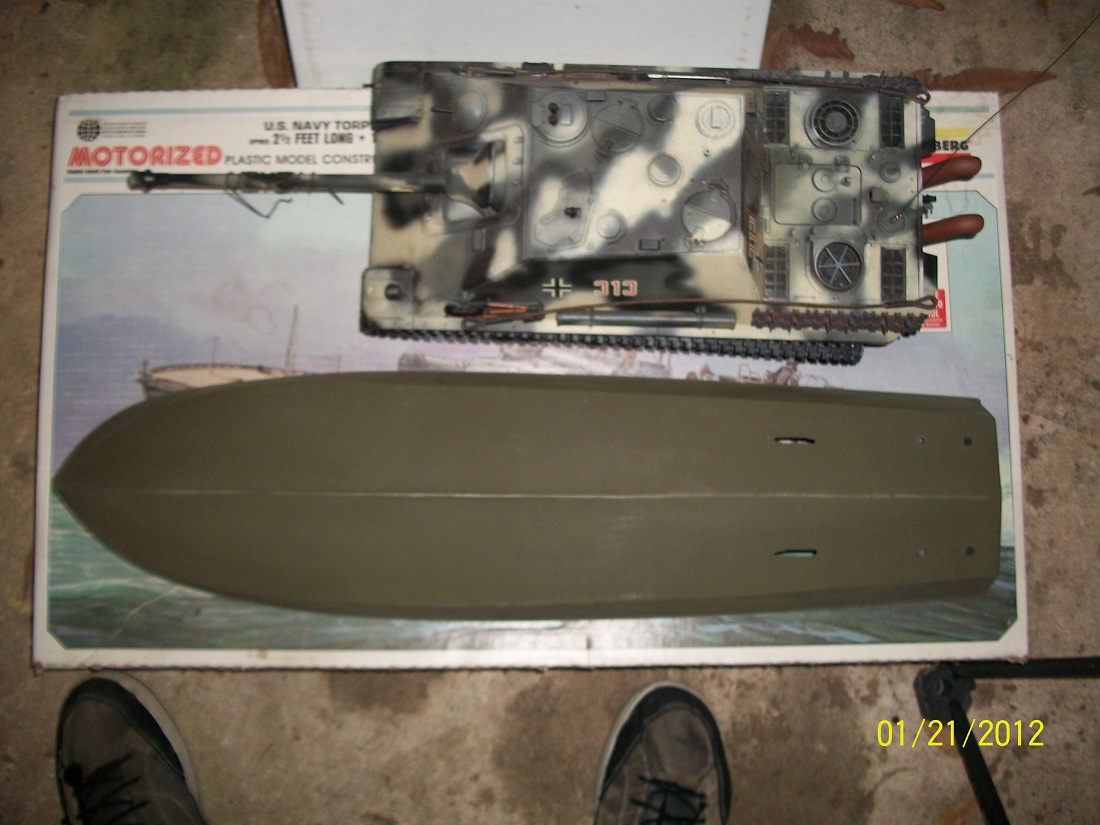 Here you go Steiner, It could use some paint,the one in the box is painted Flat green on the lower hull
