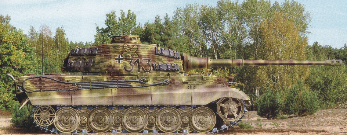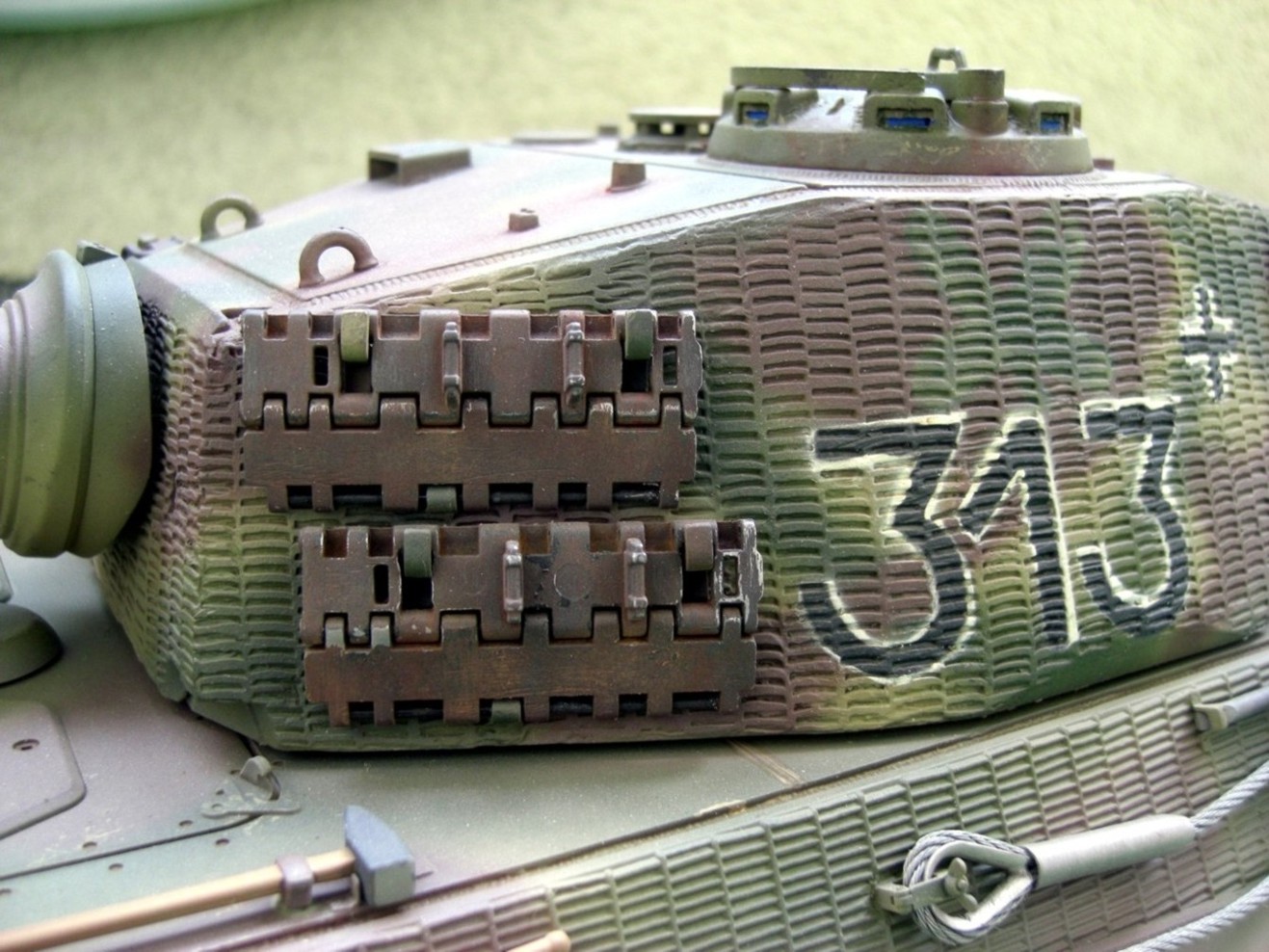 Of particular note for the camouflage are the conditions of terrain and vegetation. I chose for Kingtiger Number 313 of the 3. s. Heeres Pz. Abt. 501 in Poland in August 1944 as role model for my KT. From the dark yellow base coat is not more much to see, but brown and green in large patches, fits very well into the pine forests of the fighting territory.