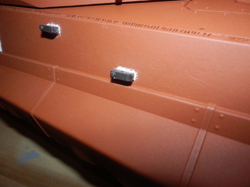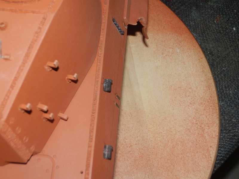 Got the tow cable mounts on & 'welded' and the gun cleaning pole clamps. Used the H/L ones sliced out from the plastic pre formed stuff & further cut as required.