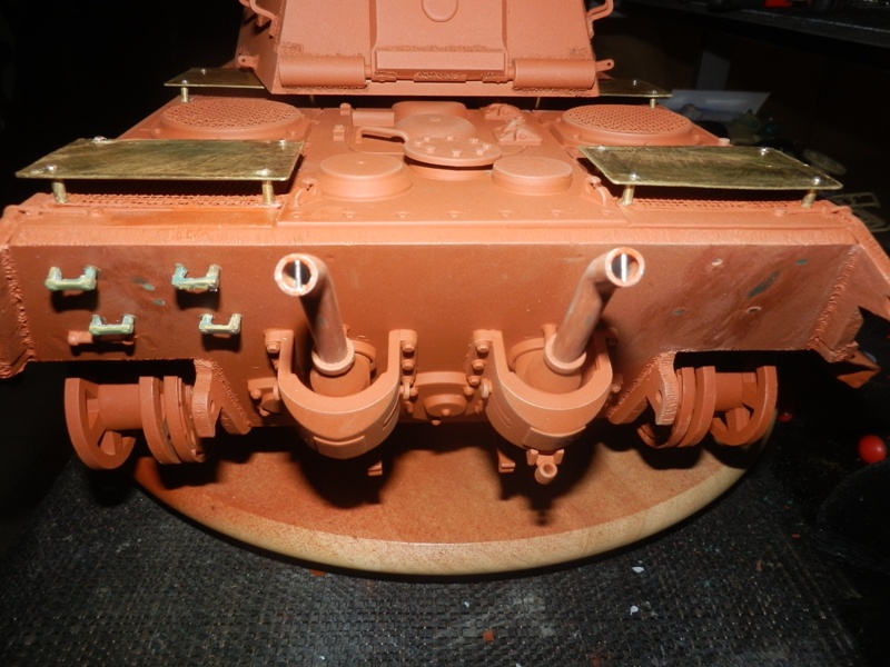 That's a 506 Tiger I think. Good example of the strangeness of these later King Tigers. 18 tooth sprocket and single link tracks but only has the 4 links per side on the turret yet has fuel vents, armoured radiator covers on the back but really old style mesh covers on the front, no jack or block. Shows the factory applied ambush scheme nicely though and that they were painted without the skirts on. Not sure if that is a track rope on the top either, which many of these didn't have.
