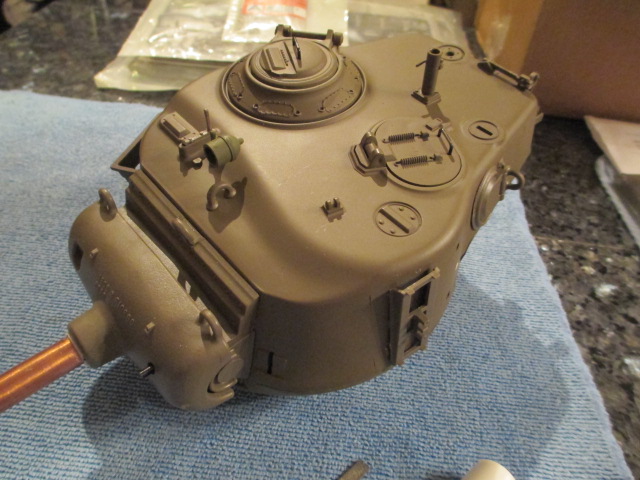 The Barrel fits. ;o) I am working on using the Tamiya mantlet and trunnions with the HL air soft unit. ;o)