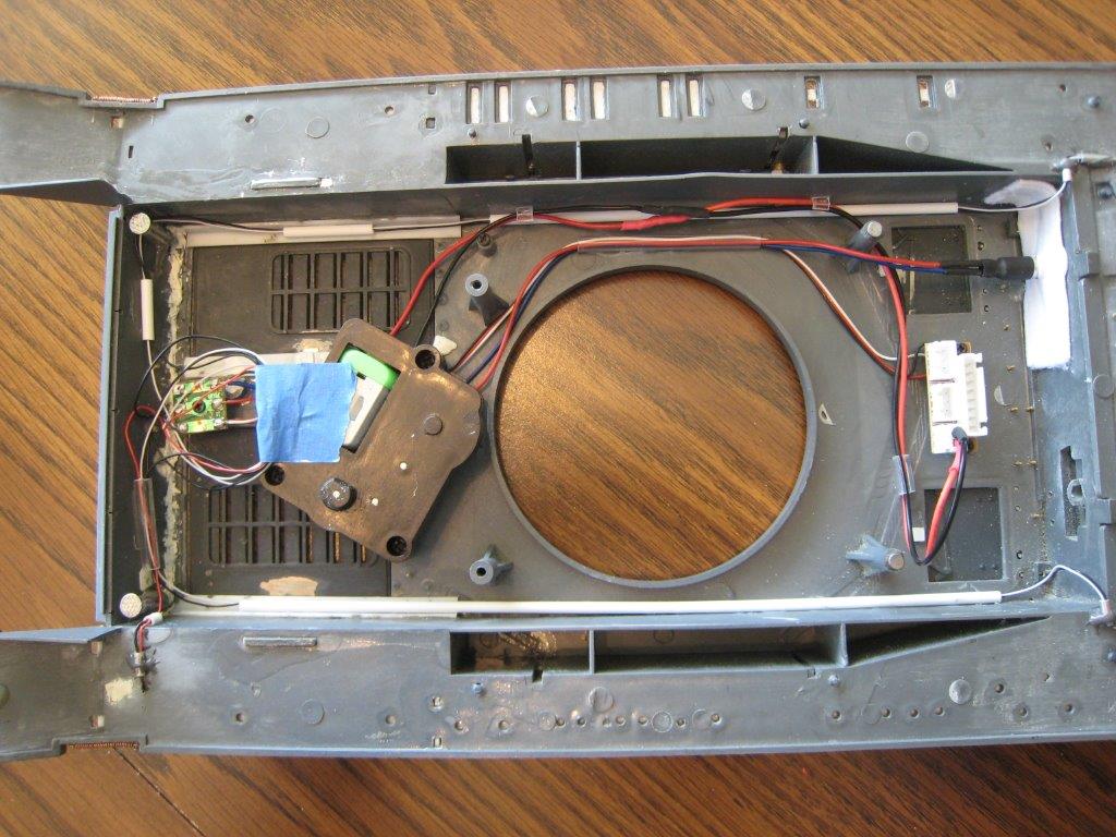 UV LED in the turret. I basically did the same thing that Perry S. did with his setup (http://www.rcuniverse.com/forum/rc-tank ... t-bbs.html). My only challenge is that the LEDs don’t seem to be working. I’m not sure if I’m not supplying enough voltage or if they’re defective. I have new LEDs coming from an eBay vendor that tested them using 3V batteries; so, they should work on my 3.1V circuit. But, I installed everything so that I could get the rest done.