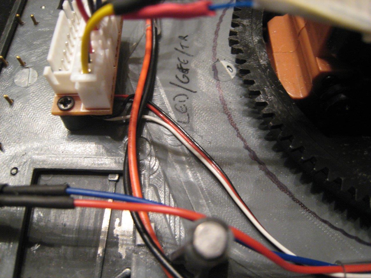 I worked out the wiring for the upper hull. Lights and hull machine gun are hard-wired. The turret rotation motor is plugged in. The other plugs will go into the turret or come from the main board in the lower hull.