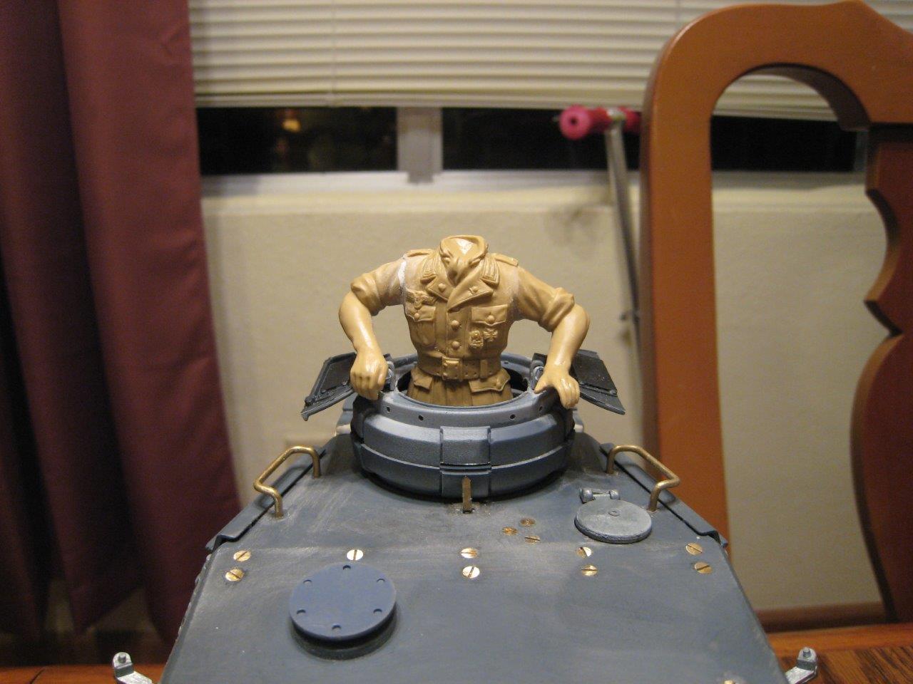 But, in the meantime, I got my TC back from a buddy that was painting him for me. KSOC kindly provided me a TC, "Otto". In putting it together I realized it was designed to have a hand in the air (actually holding the open hatch on an early Tiger I cupola). But, it reached way above the split hatch on a PzIV Ausf G. So, I used some putty and micro files to reposition the arm and blend it to look natural. Once I got it to where I thought it looked right, I gave it to him for detailing and painting. Of course, just like he did with the PzIII TC, he did a great job. Getting it was a little like Christmas, but in June. :)