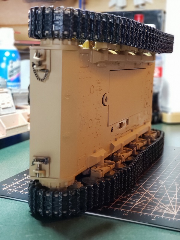Today saw a project lined up for the Office but I was still able to grab an hour to work on the Pz IV. I had sourced the right diameter corks to plug the eight screw holes on the Lower. Installation was simple, insert as far as the cork will go then then trim the excess off ( I use a Tamiya hobby saw ). Use a gel cement to harden the face of the cork plug. Follow this step up with primer and paint and once the weathering is done on the completed Tank, you should have a hard time locating those screw mounts.