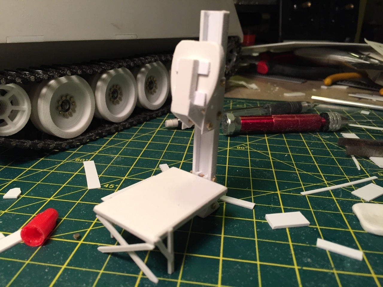 With the addition of the roof details, construction of the exterior is completed... i think. I might give a shot at redoing the arm for the trim vane to make it more accurate but that will be it. I turn the model around and round and do not see anything else i want to do prior to painting. More items will be added later like spare tracks, Jerrycans, tow cables, tools... but after painting.