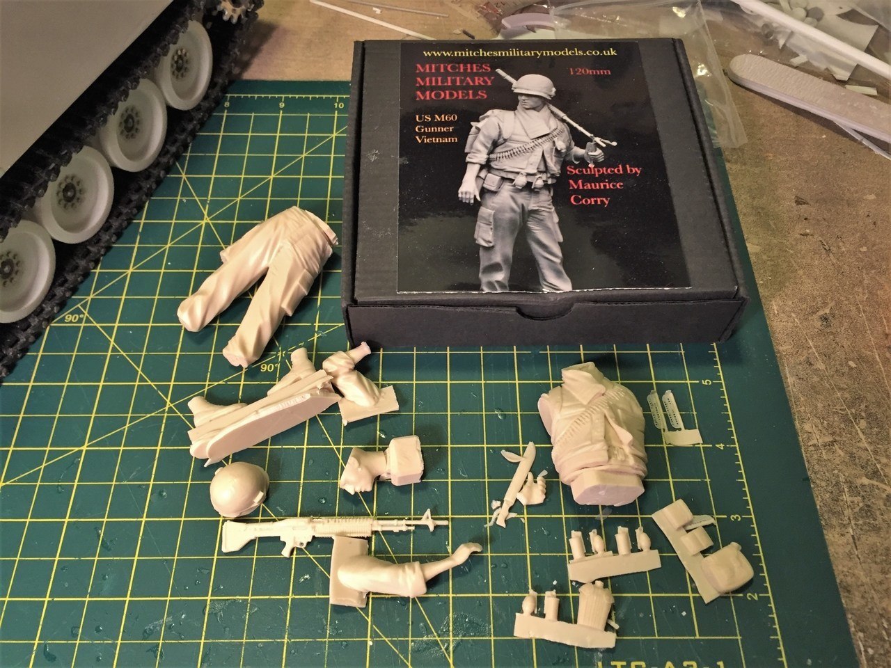The idea of a RC running "M-113 Vietnam diorama" with interior came to me when I realized that a lot of the interior can be made available for detailing and for crew to live in. Vietnam era US tank crew and tank riders in 1/16 are non existing on the market so I have to use what is available and modify it.